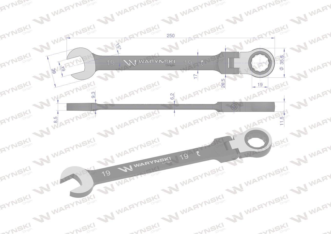 Klucz płasko-oczkowy 19mm z grzechotką 72 zęby i przegubem waryński