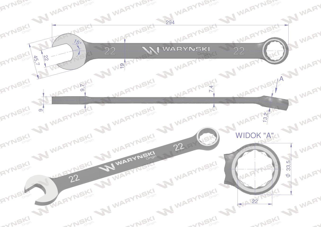 Klucz płasko-oczkowy 22mm crv standard asme b107-2010 waryński
