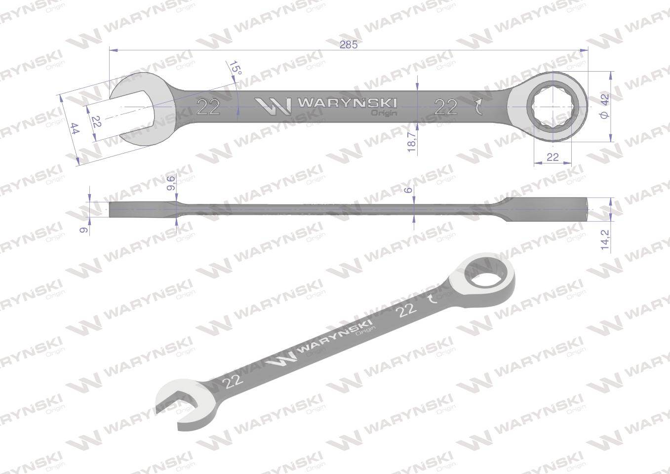 Klucz płasko-oczkowy 22mm z grzechotką 72 zęby standard asme b107-2010 waryński