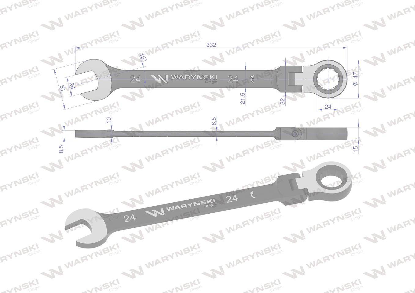 Klucz płasko-oczkowy 24mm z grzechotką 72 zęby i przegubem waryński