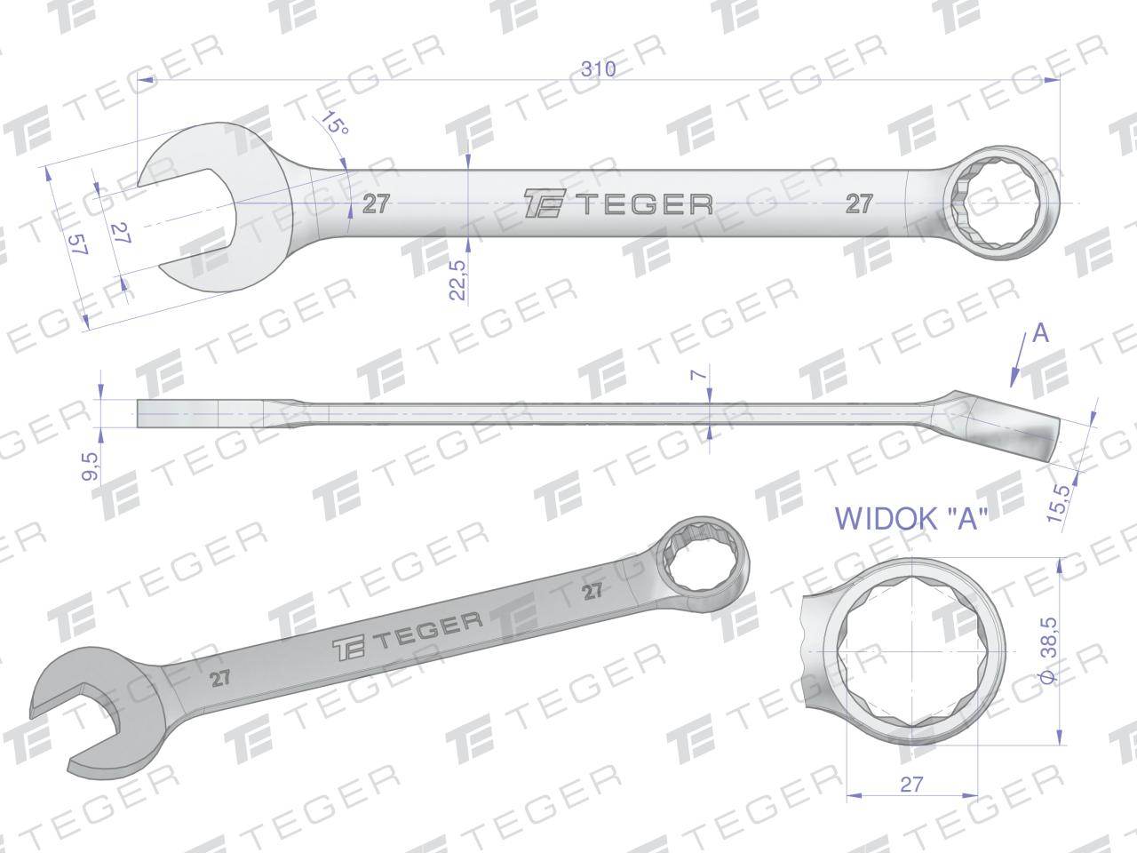 Klucz płasko-oczkowy marki teger / wykonanych ze stopu stali chromowo-wanadowej crv, wytrzymałej na naprężenie statyczne i kinetyczne. Unikalna powłoka na powierzchni znacząco zwiększa komfort pracy oraz pozwala na utrzymanie narzędzi w czystości. Klucz kuty matrycowo, odpory na odkształcenia doskonale wykalibrowany. Dwunastokątna końcówka klucza płasko-oczkowego, dodatkowo wygięta ułatwia manewrowanie kluczem. Właściwości wysoka jakość wykonania (stali chromowo-wanadowej crv), zabezpieczającej przed korozją, kuty matrycowo odporny na odkształcenia, przeznaczony do prac nawet w najcięższych warunkach pod dużym obciążeniem