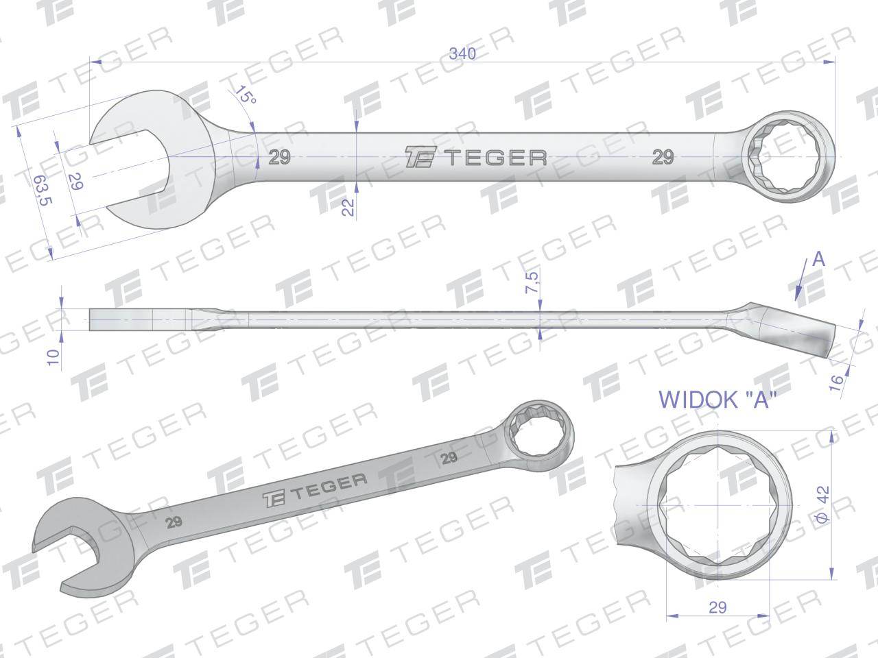 Klucz płasko-oczkowy marki teger / wykonanych ze stopu stali chromowo-wanadowej crv, wytrzymałej na naprężenie statyczne i kinetyczne. Unikalna powłoka na powierzchni znacząco zwiększa komfort pracy oraz pozwala na utrzymanie narzędzi w czystości. Klucz kuty matrycowo, odpory na odkształcenia doskonale wykalibrowany. Dwunastokątna końcówka klucza płasko-oczkowego, dodatkowo wygięta ułatwia manewrowanie kluczem. Właściwości wysoka jakość wykonania (stali chromowo-wanadowej crv), zabezpieczającej przed korozją, kuty matrycowo odporny na odkształcenia, przeznaczony do prac nawet w najcięższych warunkach pod dużym obciążeniem