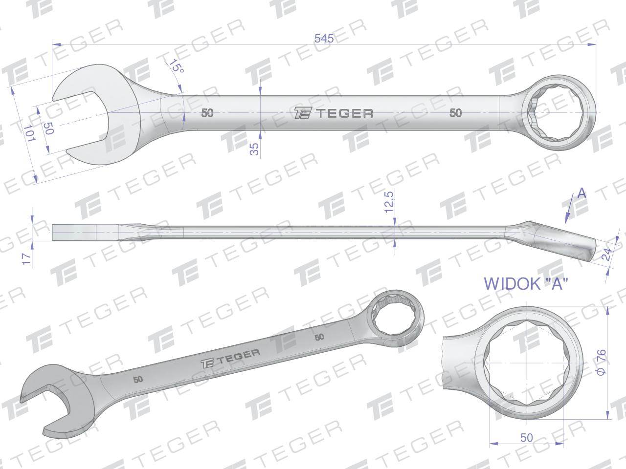 Klucz płasko-oczkowy marki teger / wykonanych ze stopu stali chromowo-wanadowej crv, wytrzymałej na naprężenie statyczne i kinetyczne. Unikalna powłoka na powierzchni znacząco zwiększa komfort pracy oraz pozwala na utrzymanie narzędzi w czystości. Klucz kuty matrycowo, odpory na odkształcenia doskonale wykalibrowany. Dwunastokątna końcówka klucza płasko-oczkowego, dodatkowo wygięta ułatwia manewrowanie kluczem.