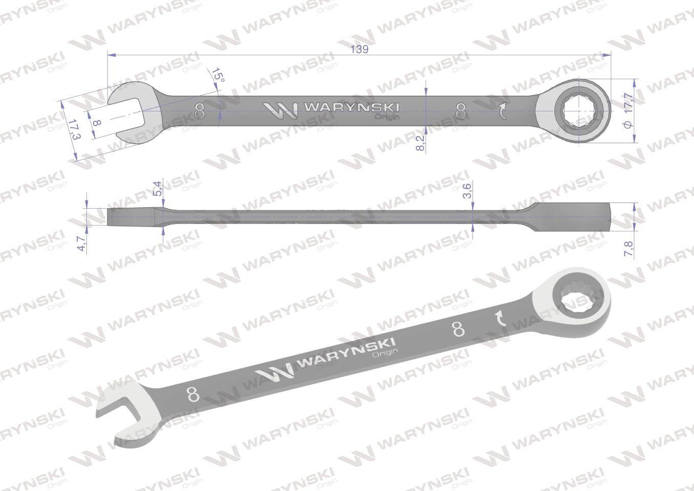 Klucz płasko-oczkowy 8mm z grzechotką 72 zęby standard asme b107-2010 waryński
