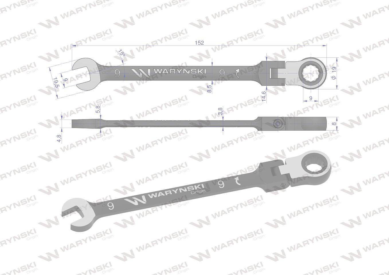 Klucz płasko-oczkowy 9mm z grzechotką 72 zęby i przegubem waryński