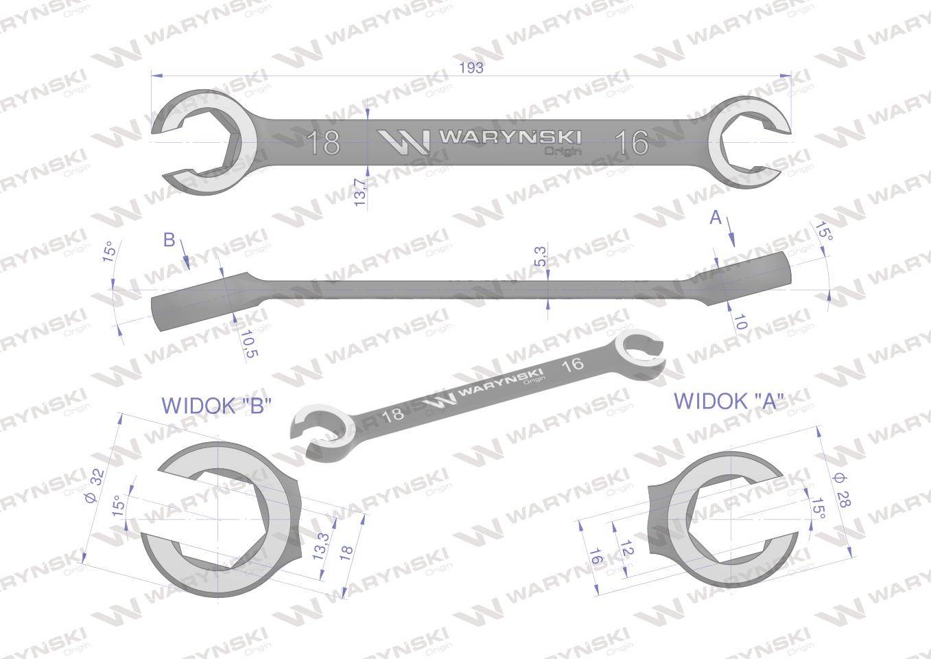 Klucz płasko oczkowy otwarty 16×18 waryński