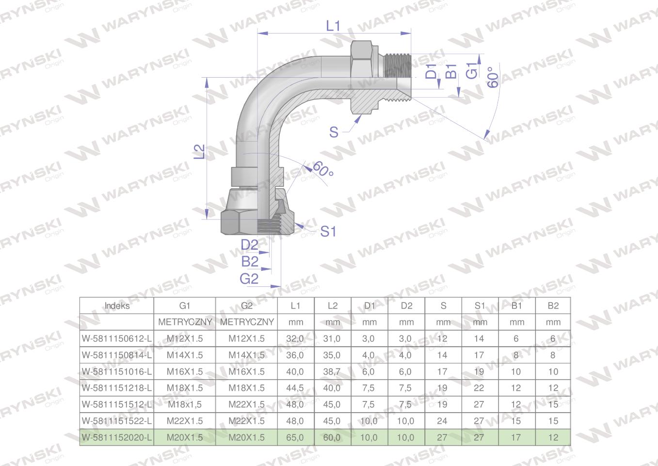 Kolanko hydrauliczne metryczne łukowe ab m20x1.5 60 stopni xevw waryński 10szt