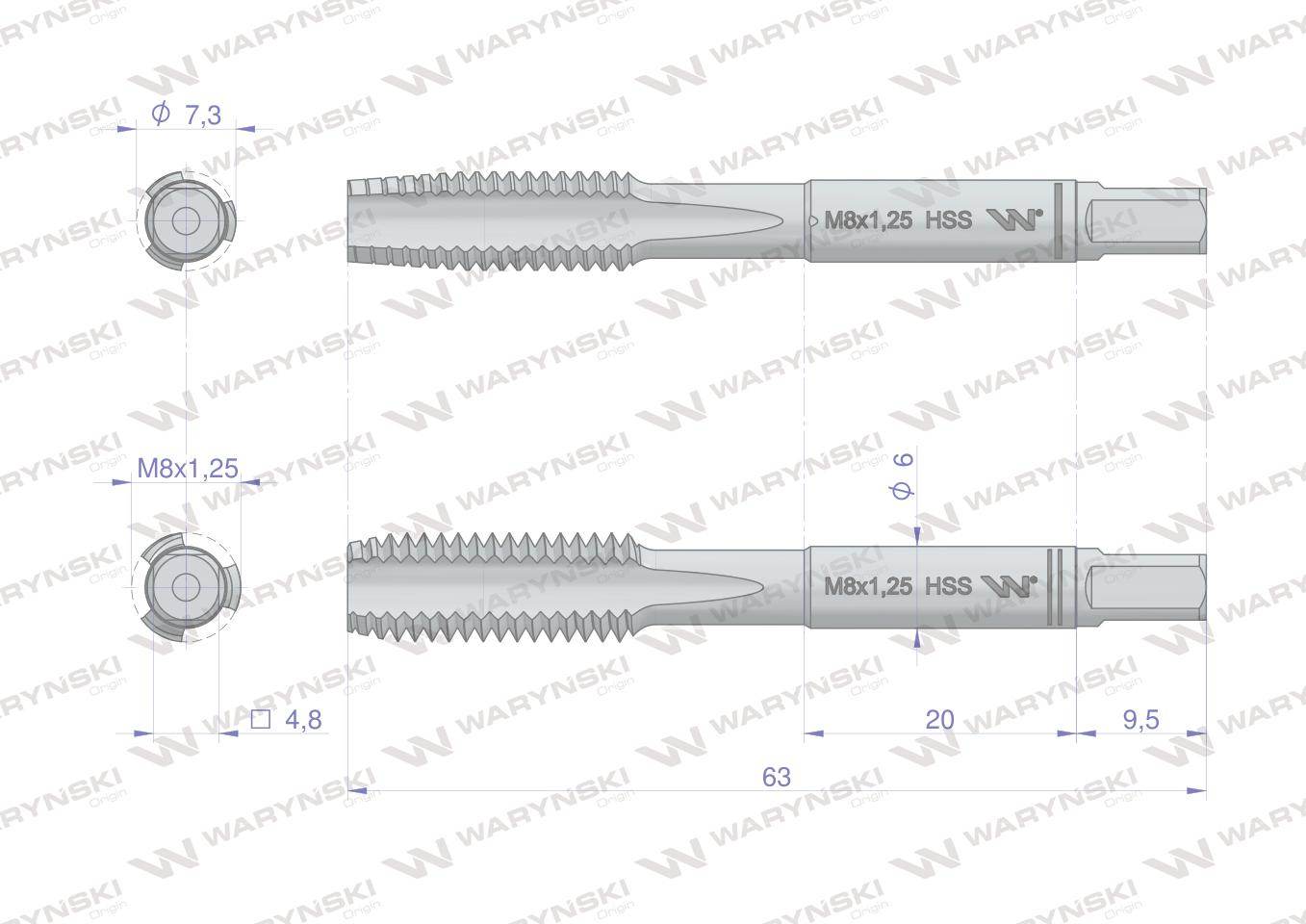 Gwintownki m8x1.25 ze stali szybkotnącej hss komplet 2 szt (zgrubny, wykańczak) do gwintu metrycznego din 352/2 waryński
