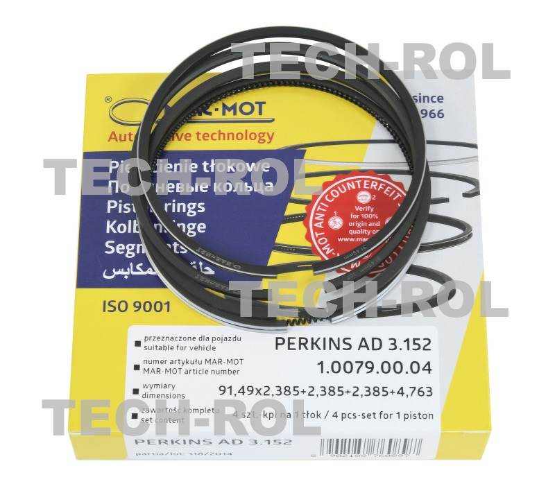 Komplet pierścieni tłokowych silnika, Nominał, Q- 91,49 mm ,4- szt. na komplet, do MF-3, AD3.152 41158065, 10079.0004 MAR-MOT Września