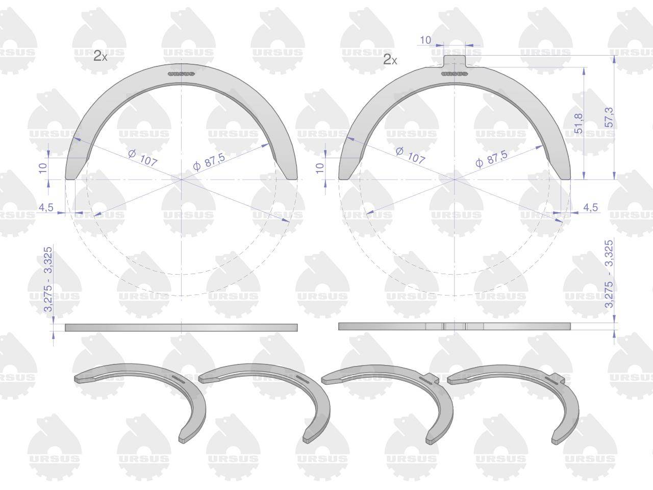 Komplet półpierścieni n-0.75 iii szlif 91250624 80002138 c-385 oryginał ursus
