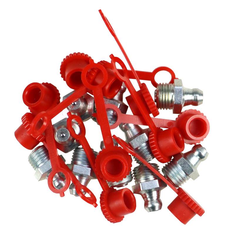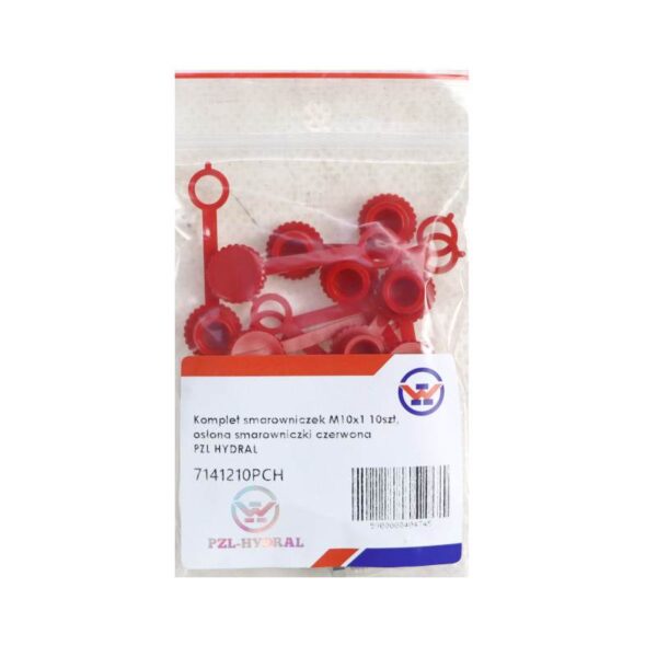 Komplet Smarowniczek M10x1 10szt Osłona Smarowniczki Czerwona Pzl Hydral