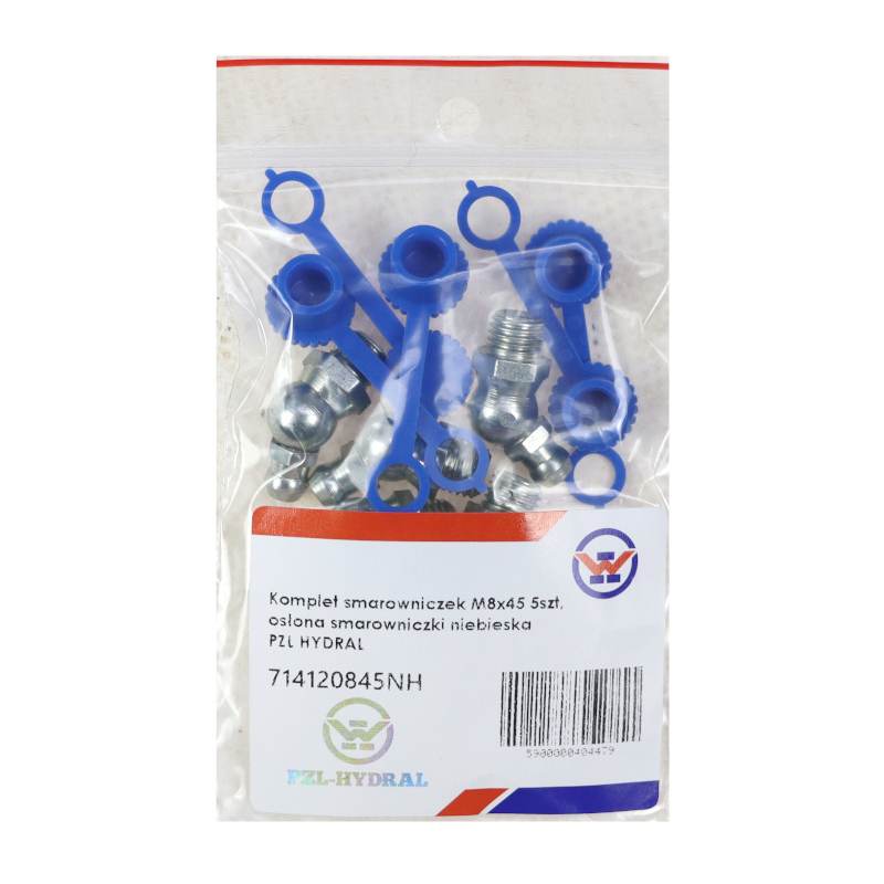 Komplet Smarowniczek M8x45 5szt Osłona Smarowniczki Niebieska Pzl Hydral