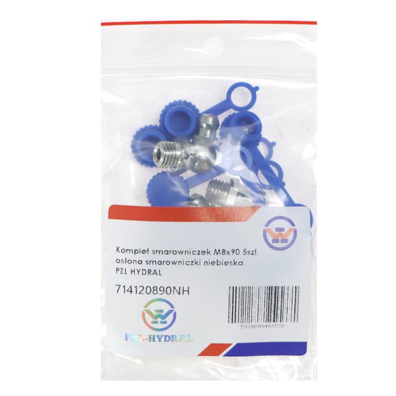 Komplet Smarowniczek M8x90 5szt Osłona Smarowniczki Niebieska Pzl Hydral