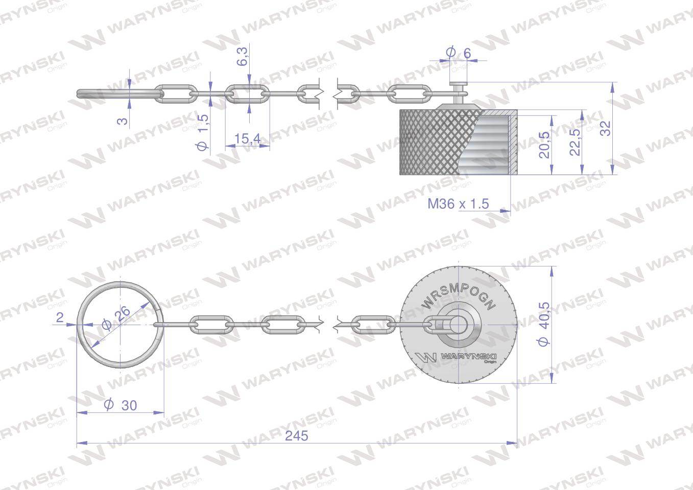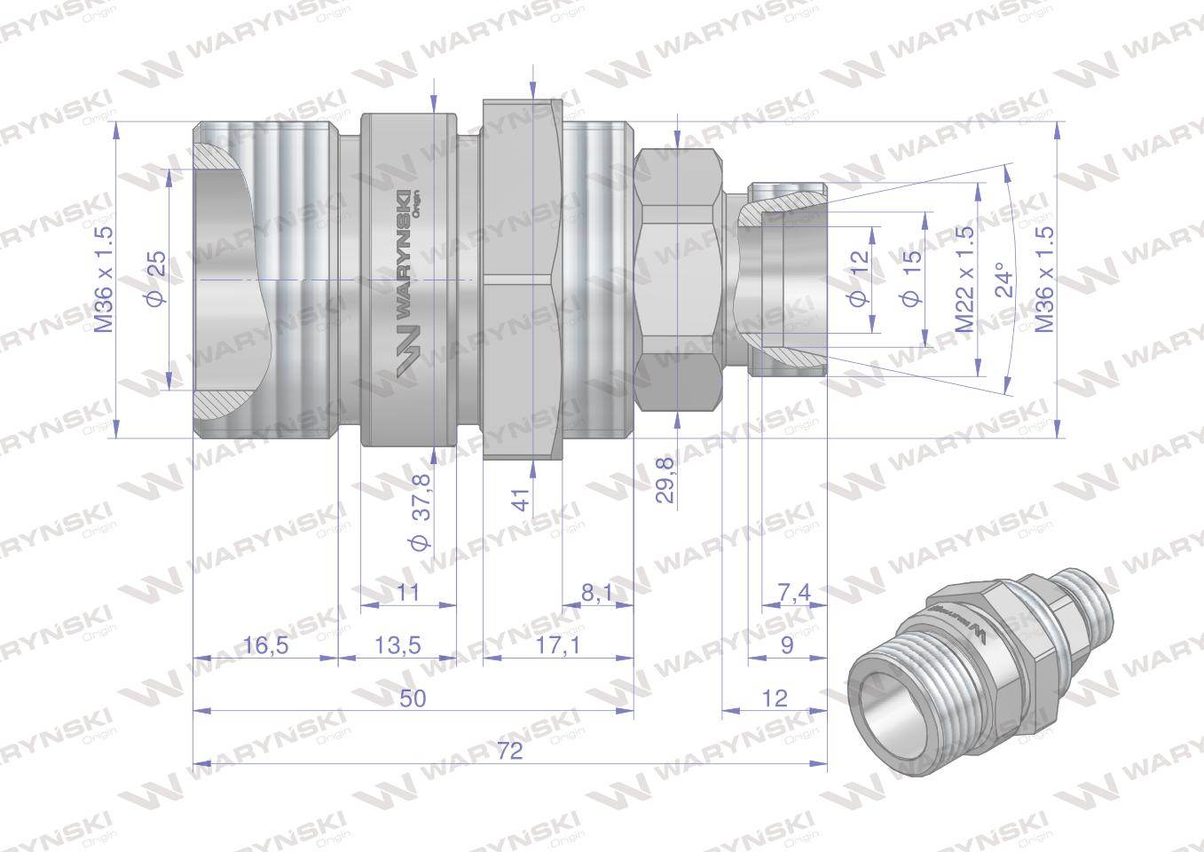 Komplet zawór gniazdo m22x1.5 skręcane 50490020 z gwintowaną pokrywą/osłoną aluminiową waryński