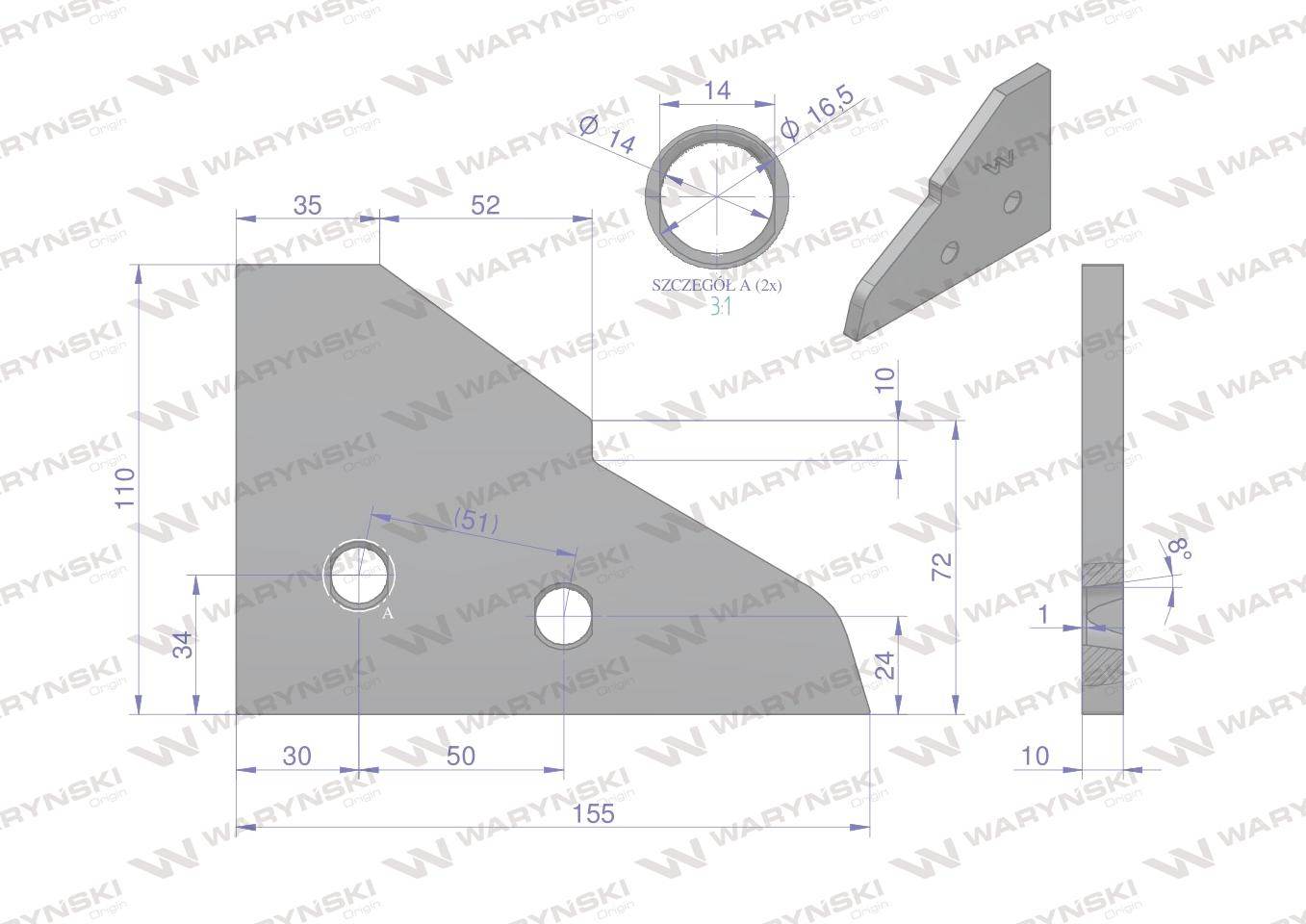 Końcówka płozy lewa zastosowanie kuhn stal borowa waryński śruby współpracujące:2 x w-712121234