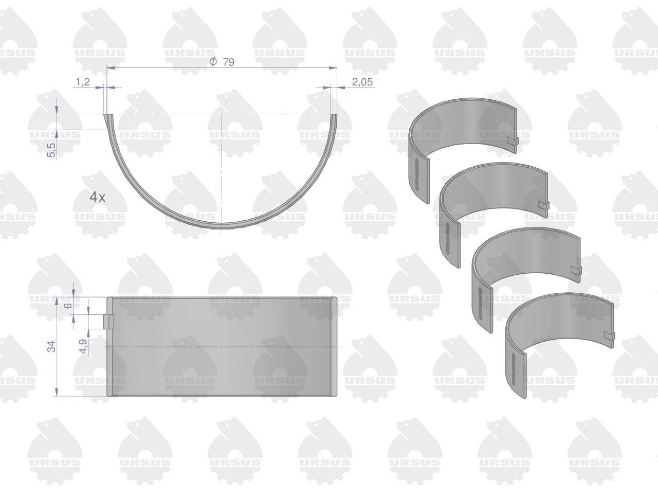 Kpl. panewek korbowodowych n-0,25 (i szlif) 50103911, 90060121 c-330 oryginał ursus
