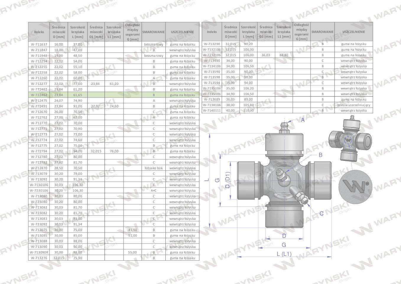 Krzyżak wału 24x61.50 23.84x61.50 smarowanie centralne waryński