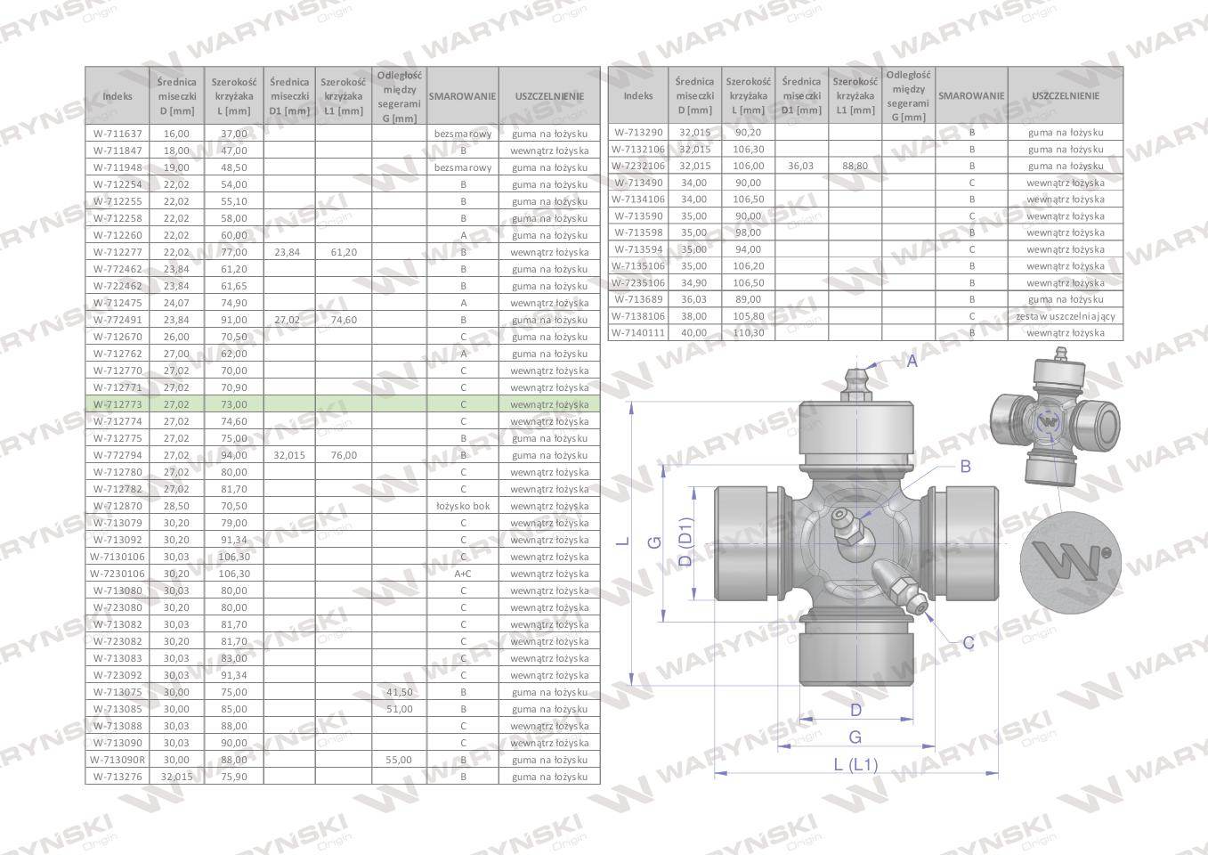 Krzyżak wału 27×73 smarowanie boczne waryński
