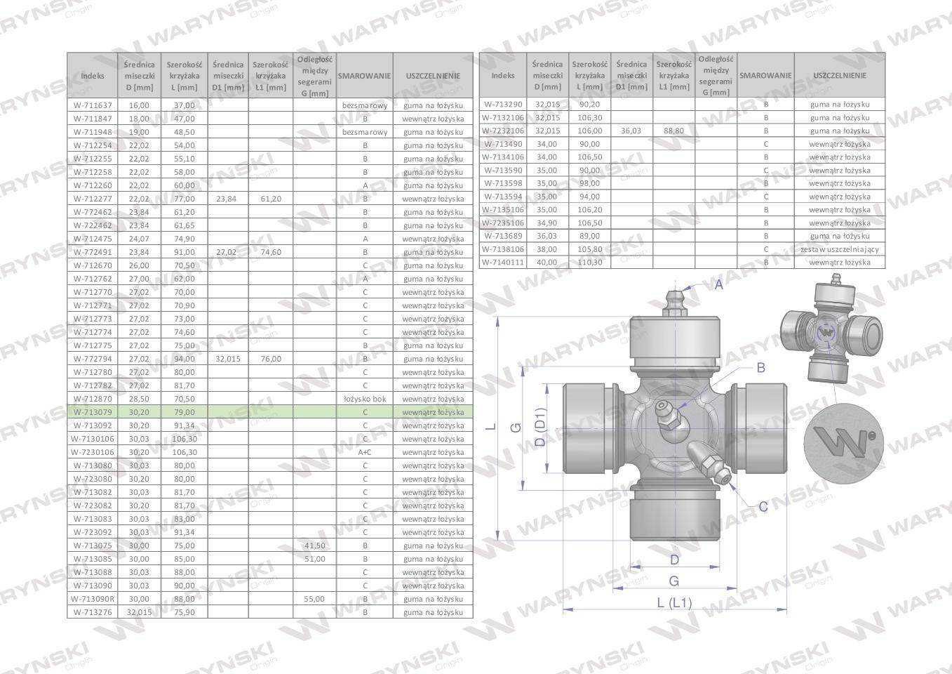 Krzyżak wału 30.20×79 smarowanie boczne waryński