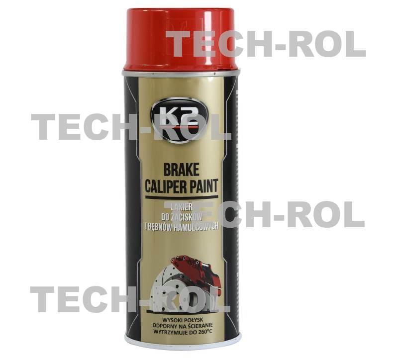 K2 BRAKE CALIPER PAINT to odporny na wysokie temperatury lakier do malowania zacisków hamulcowych. Specjalna receptura opracowana na bazie najwyższej jakości żywic, tworzy trwałą powłokę o wysokim połysku odporną na pył hamulcowy, środki chemiczne, sól, benzynę i niekorzystne warunki atmosferyczne.