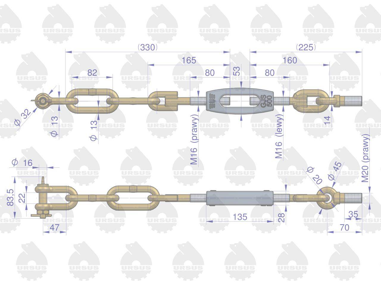 Łańcuch boczny 46450390 46650400 c-360 oryginał ursus