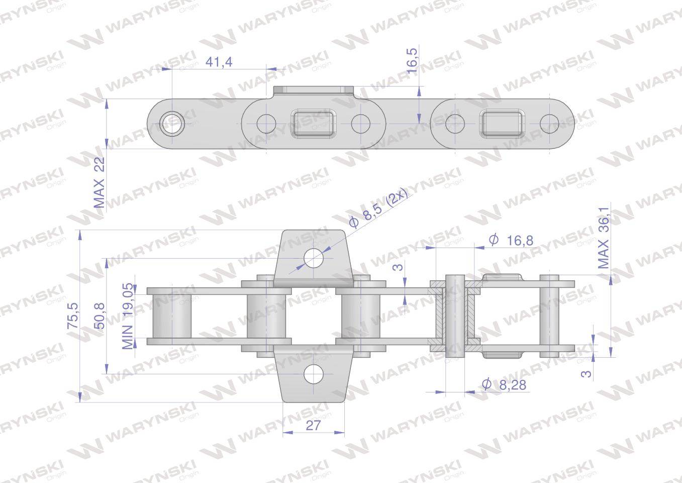 Łańcuch podajnika ca550vd łapka k1 co 4 ogniwa 5m waryński