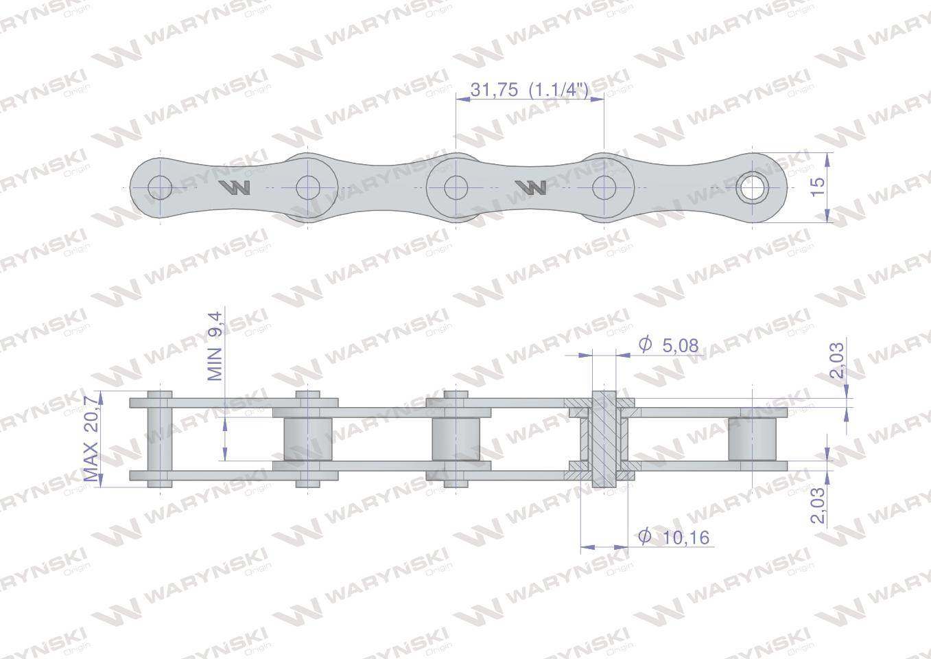 Łańcuch rolkowy 2050 210a r1 1.1/4 5 m waryński