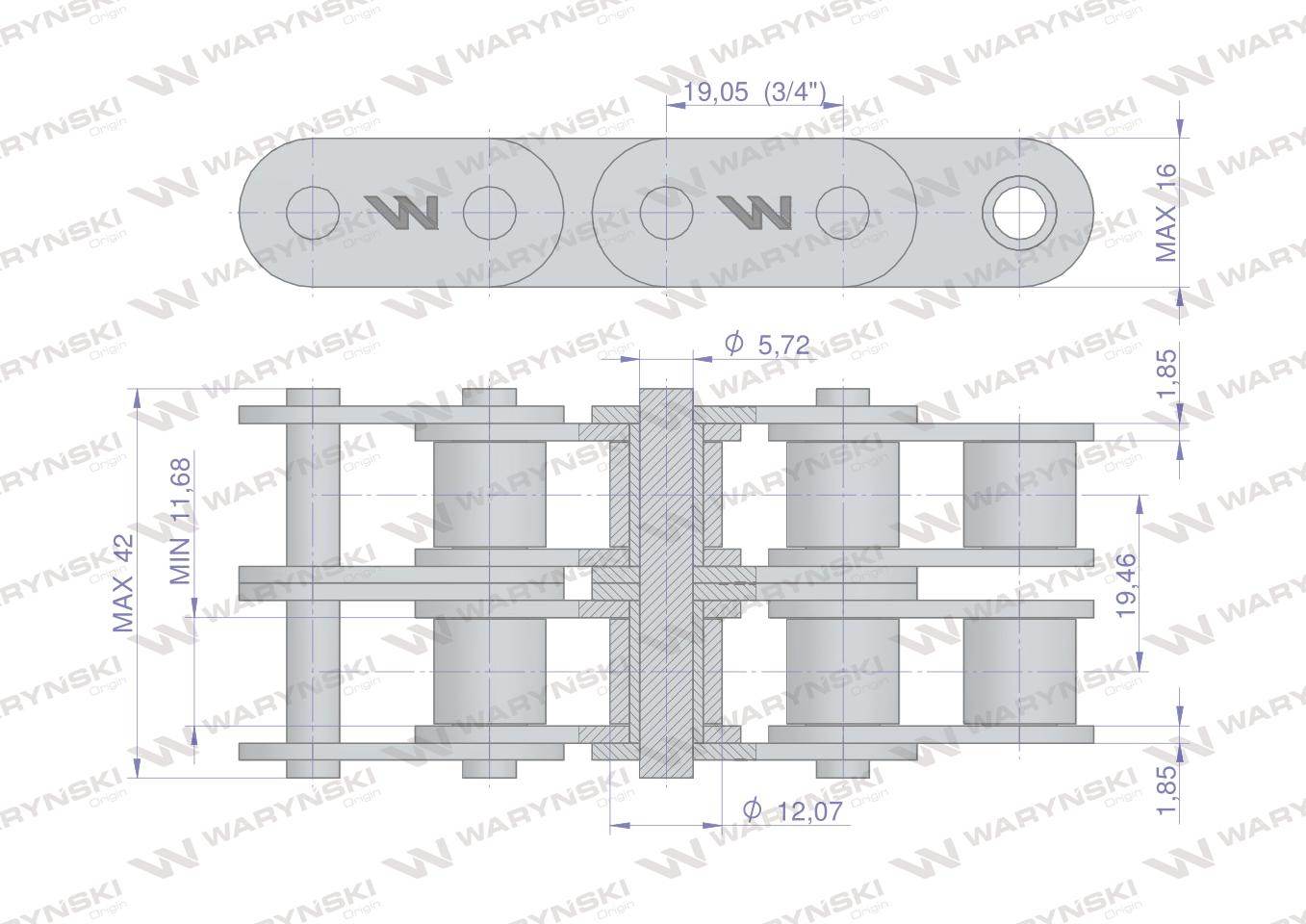 Łańcuch rolkowy prosta płytka 12b-2 r2 3/4 5 m waryński
