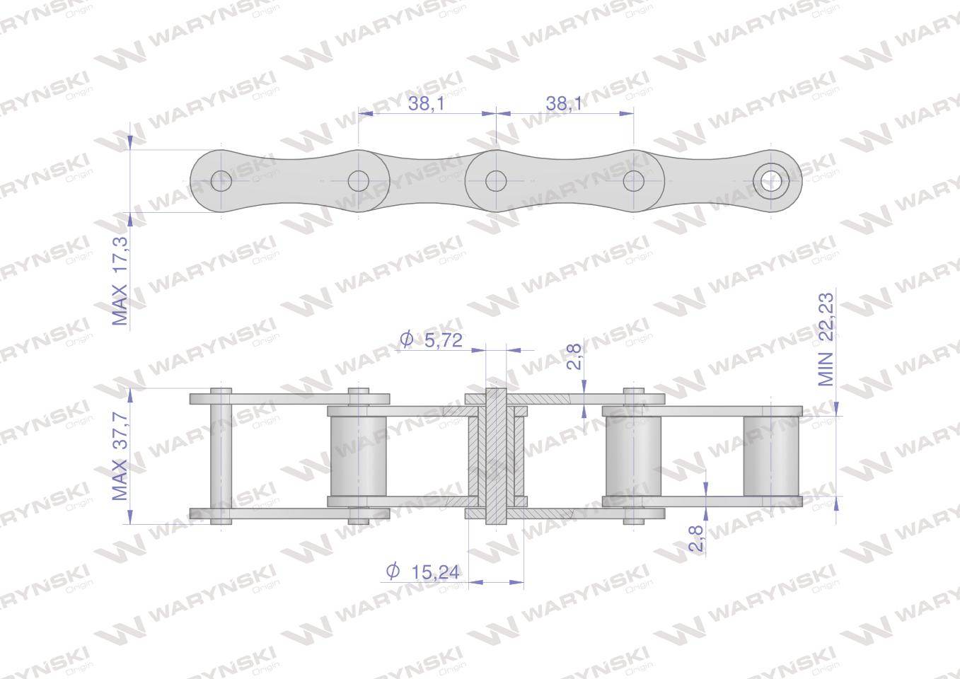 Łańcuch rolkowy s52 5m waryński