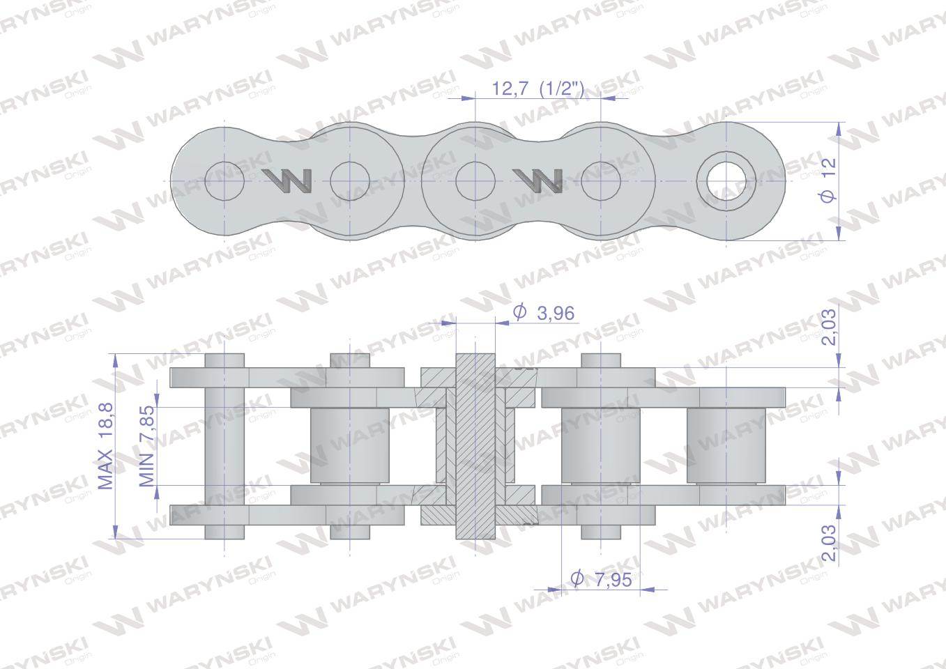 Łańcuch rolkowy wzmocniony przemysłowy 08ah-1 ansi a 40h r1 1/2 2.5 m waryński