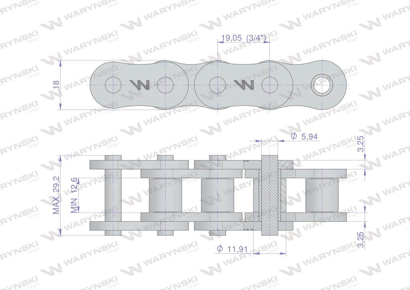 Łańcuch rolkowy wzmocniony przemysłowy 12ah-1 ansi a 60h r1 3/4 5m waryński