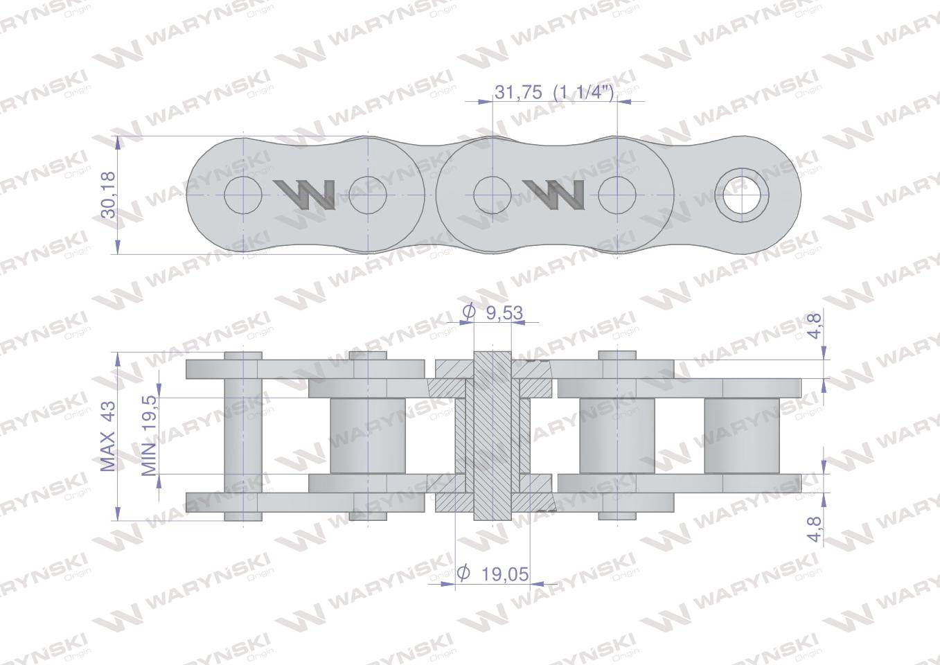Łańcuch rolkowy wzmocniony przemysłowy 20ah-1 ansi a 100h r1 1.1/4 2.5 m waryński