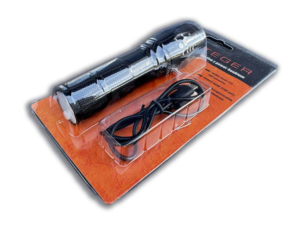 Latarka uniwersalna ładowana usb z funkcją power bank 2200mah xps 300 lm teger