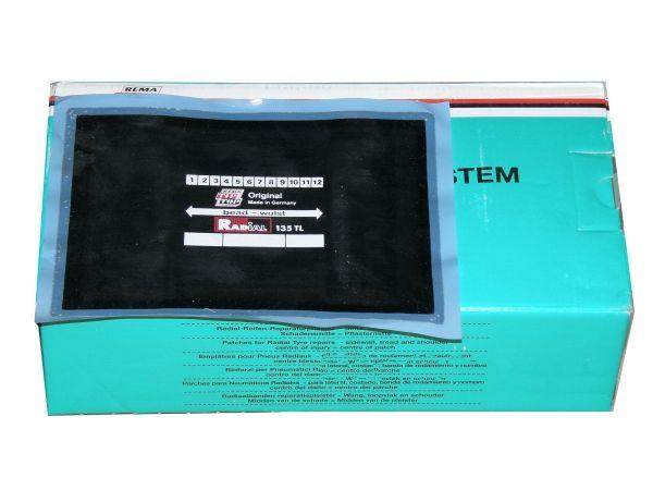 Radialny wkład naprawczy 135 tl o wymiarach 143 x 208 mmprzeznaczony do trwałej naprawy bezdętkowych opon radialnych samochodów ciężarowych oraz maszyn ziemnych metodą na zimno i na gorąco.wkłady naprawcze serii 100 to łaty radialne z kordem tekstylnym, które pozwalają na trwałą naprawę bezdętkowych opon radialnych zarówno w czole, w barku jak i w boku, zgodnie z obowiązującą tabelą doboru. Mogą być wykorzystywane do naprawy opon w procesie wulkanizacji metodą na zimno i na gorąco.w odróżnieniu do łatek uniwersalnych, wkład radialny wzmocniony jest kordem (przeplataną nicią poliamidową, zalaną gumą), który jest dostosowany do dynamicznych reakcji opony.