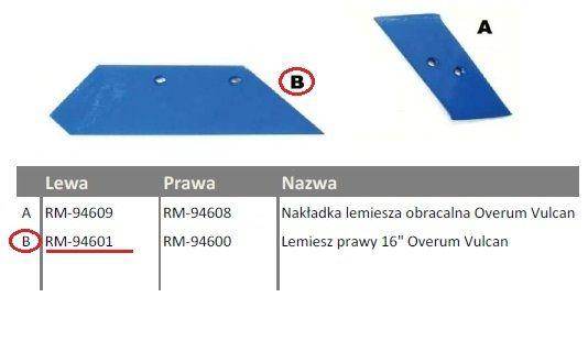 Lemiesz lewy 16″ overum vulcan pasuje śruba m12x35nos 2szt