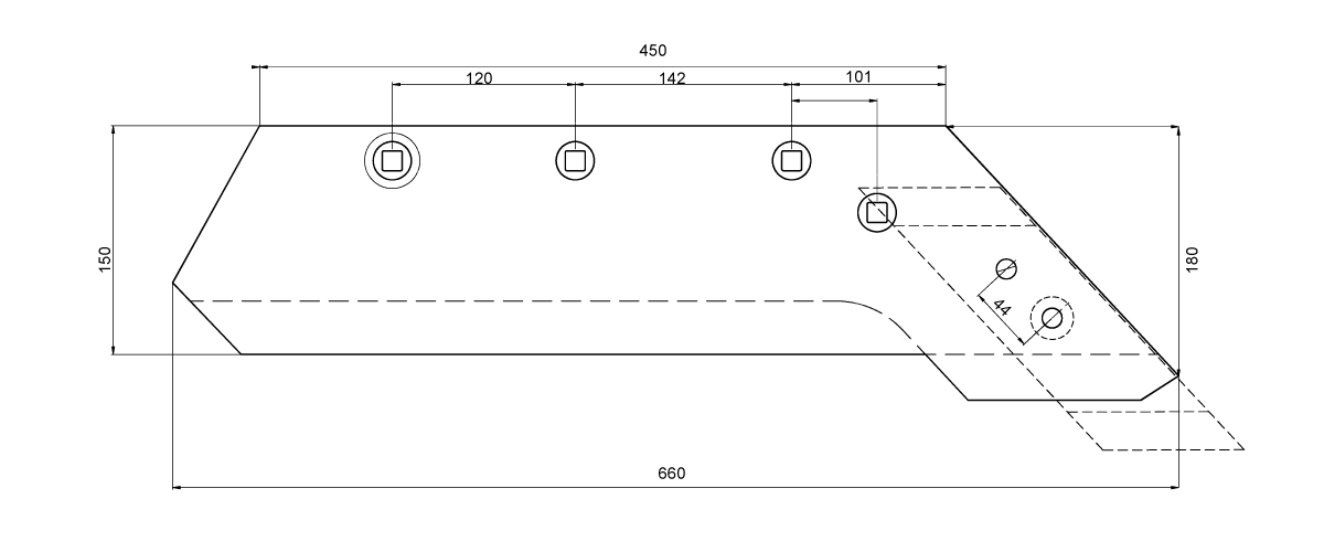 Rozstaw otworów – 120 mm / 142 mm / 101 mm / 44 mm