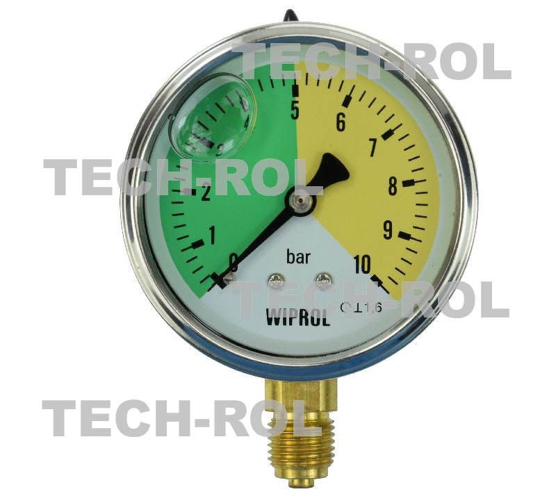 Manometr glicerynowy 0-10 bar fi-63 mm mocowanie dolne gwint 1/4 cala