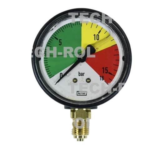 Manometr glicerynowy 0-16 bar fi-63 mm mocowanie dolne gwint 1/4 cala