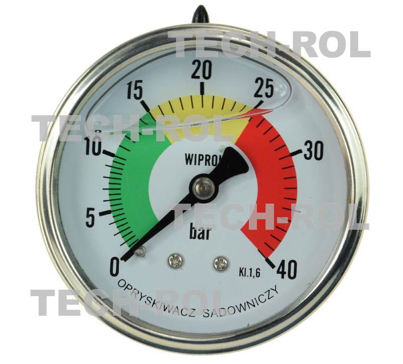 Manometr glicerynowy 0-40 bar, fi-63 mm; mocowanie tylne, gwint 1/4 cala; Opryskiwacz; Sensor MILA
