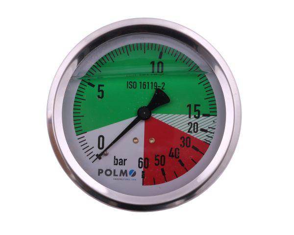 Manometr glicerynowy m100 0-15/60 bar gwint g1/4″ tylne przyłącze, obudowa kwasoodporna, sadowniczy polmo
