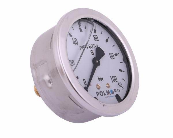 Manometr glicerynowy m63 0-100 bar tylne przyłącze g1/4" polmo
