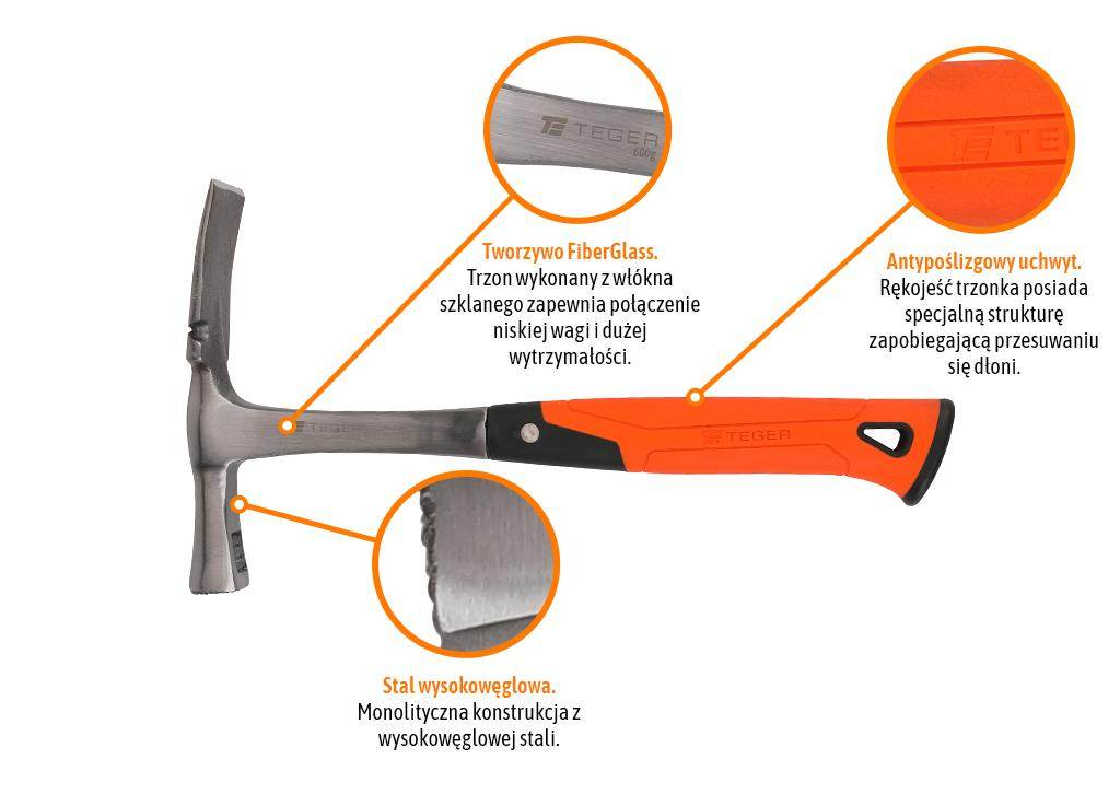 Młotek murarski monoblock typ berliński 600 g extreme teger