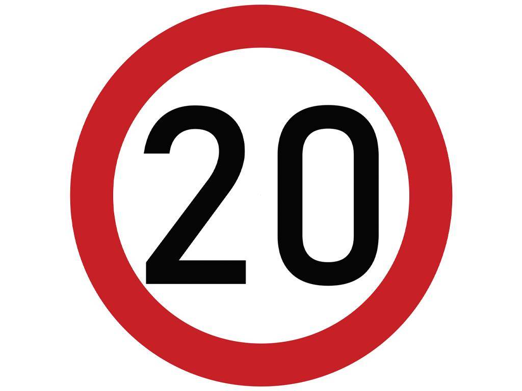 Naklejka laminowana limit prędkości 20 km/h- czerwona obwódka