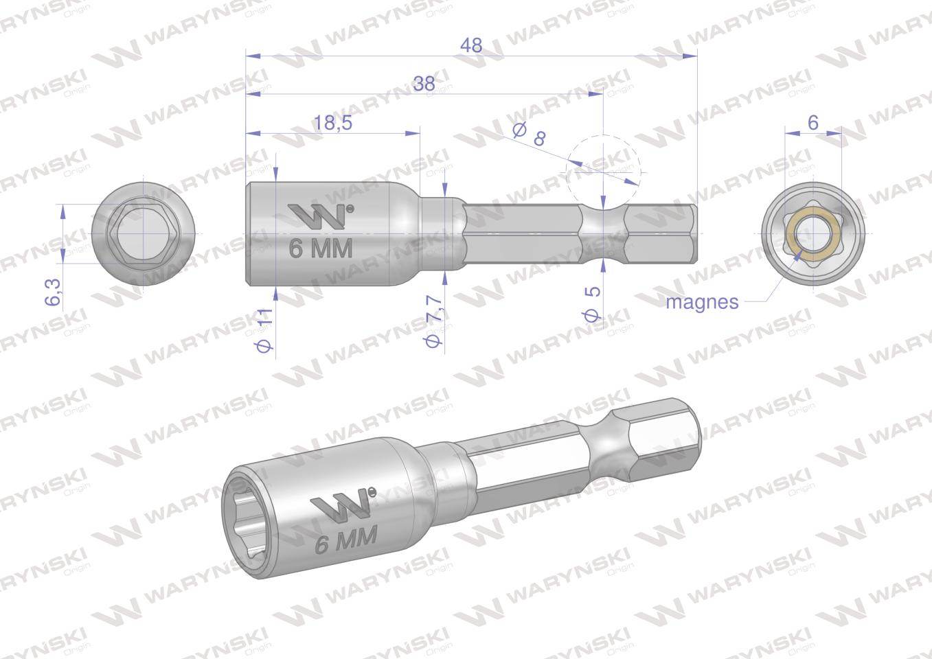 Nasadka 6mm z uchwytem narzędziowym do wkretarki długość 48 mm waryński