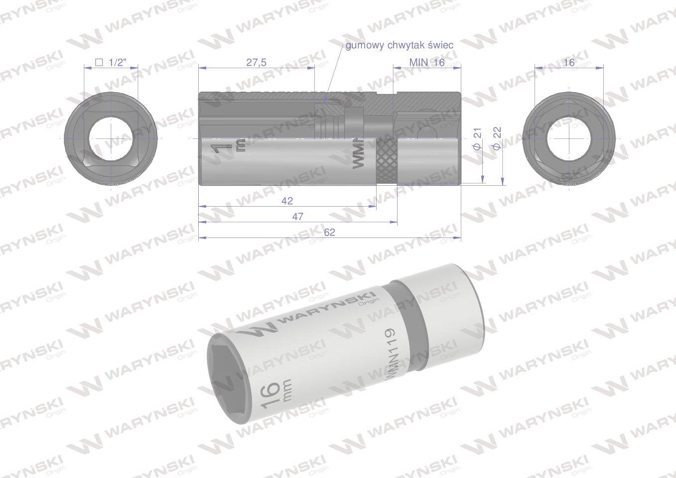 Nasadka do świec 1/2″ 16mmwaryński