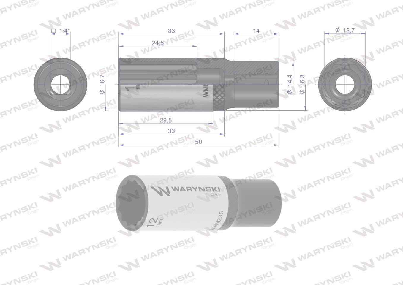 Nasadka dwunastokątna 1/4" 12mm długa crv50bv30 din 3124 waryński