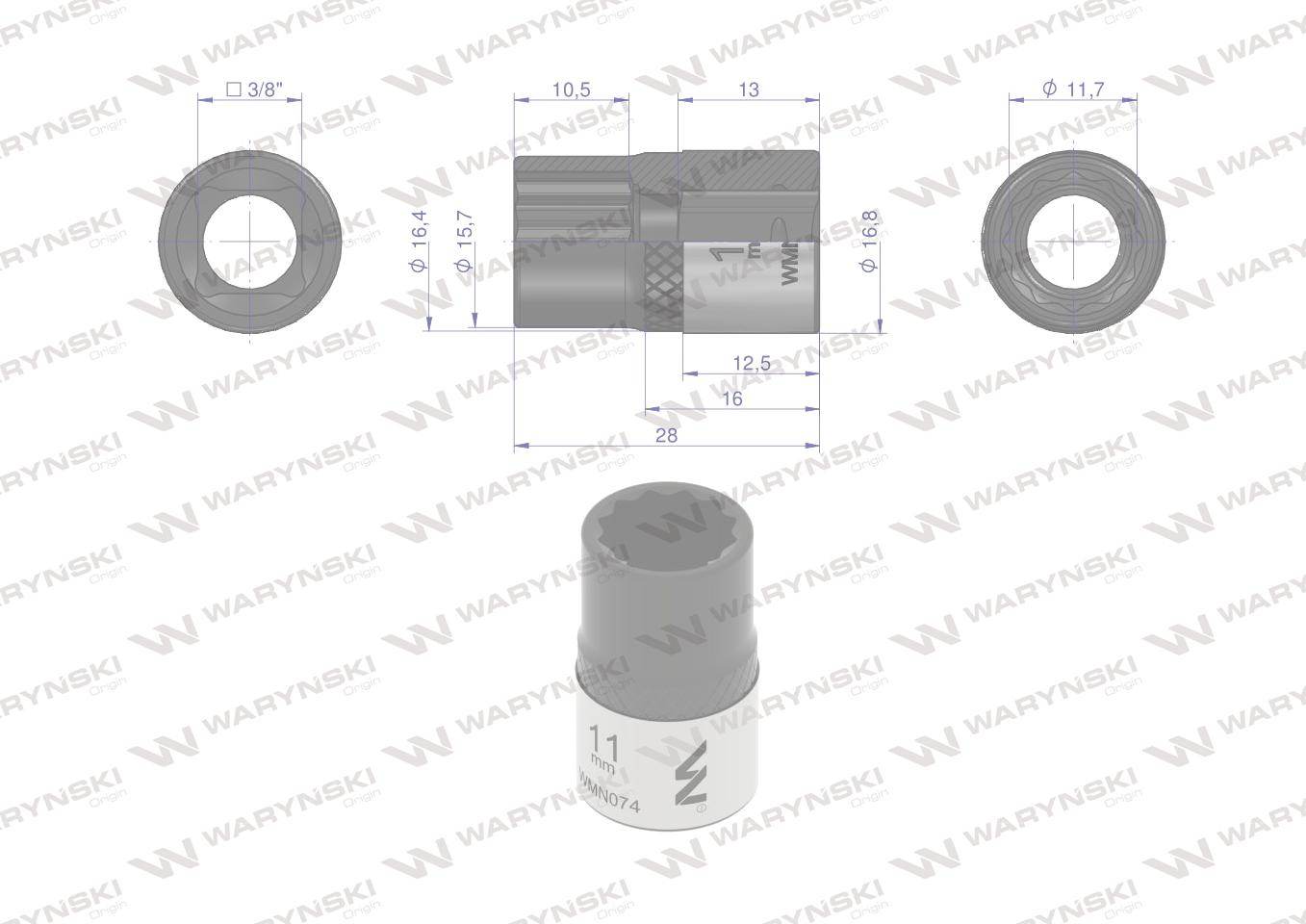 Nasadka dwunastokątna 3/8″. 11 mm. Crv50bv30. Din 3124. Waryński