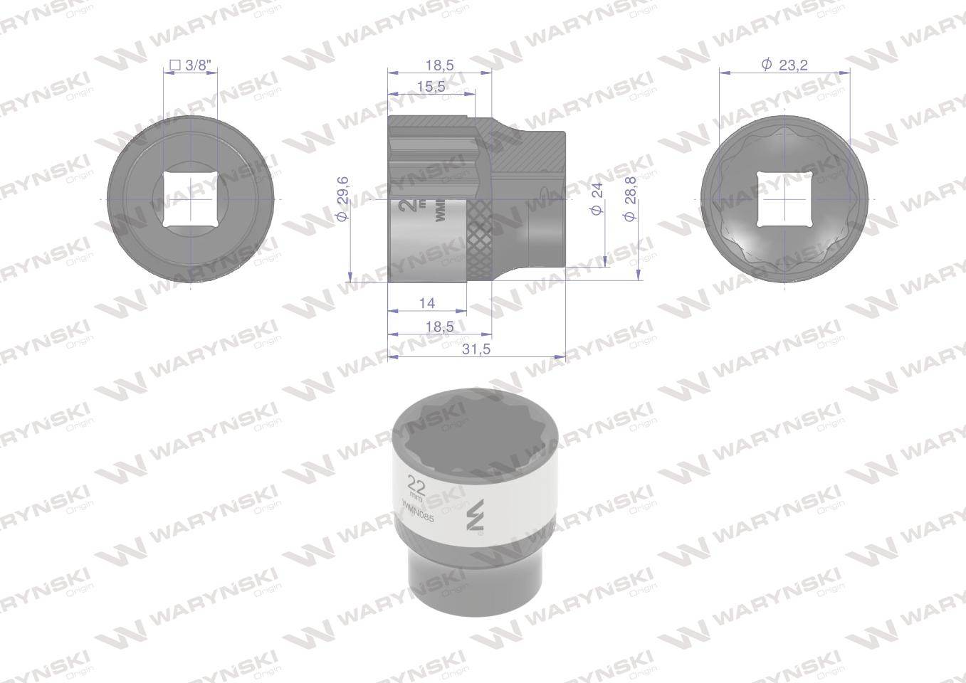 Nasadka dwunastokątna 3/8″ 22mm crv50bv30 din 3124 waryński