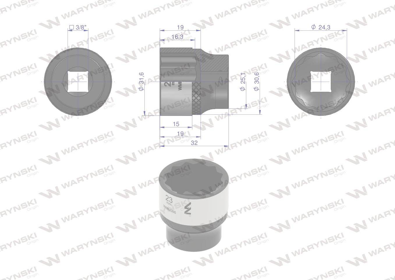 Nasadka dwunastokątna 3/8″. 23 mm. Crv50bv30. Din 3124. Waryński