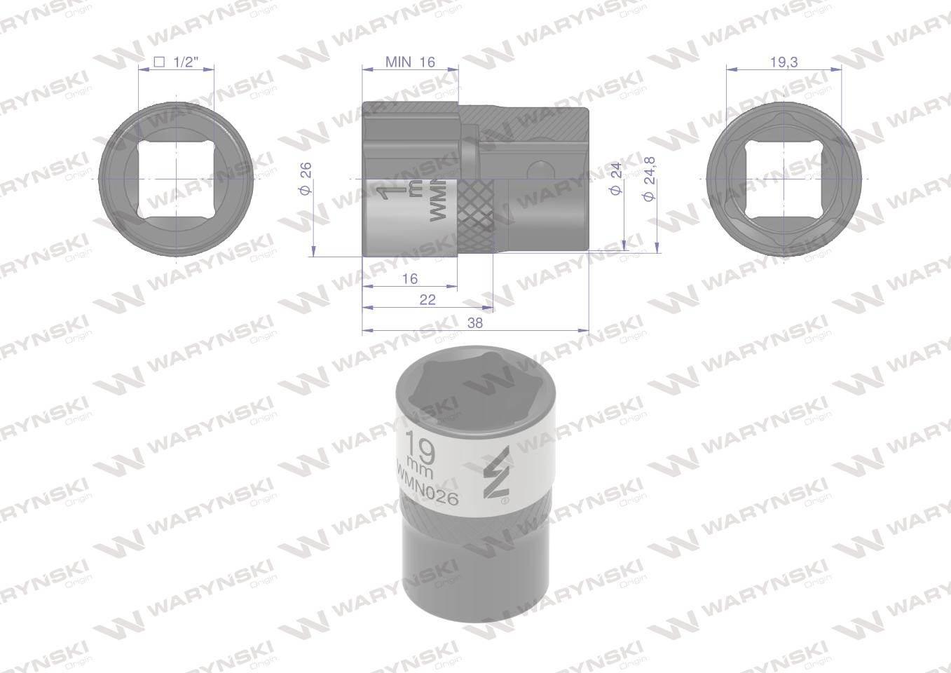 Nasadka sześciokątna 1/2″ 19mm crv50bv30 din 3124 waryński